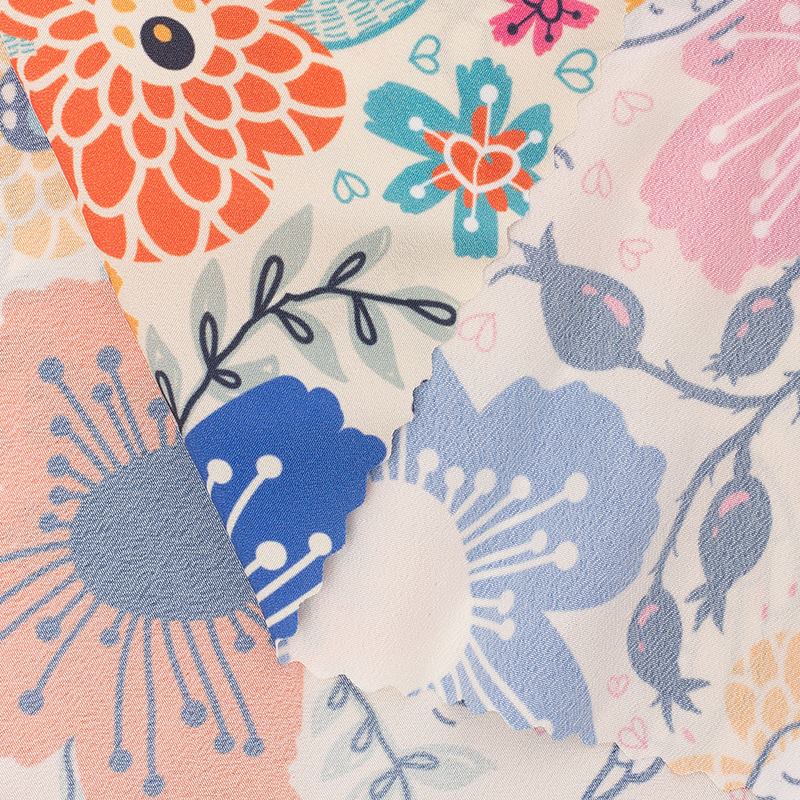 ソフトでドライなジョーゼット,撚糸,人工繊維,明るいプリントと洗濯堅牢度 用途:スカーフなど,ブライダルウェア