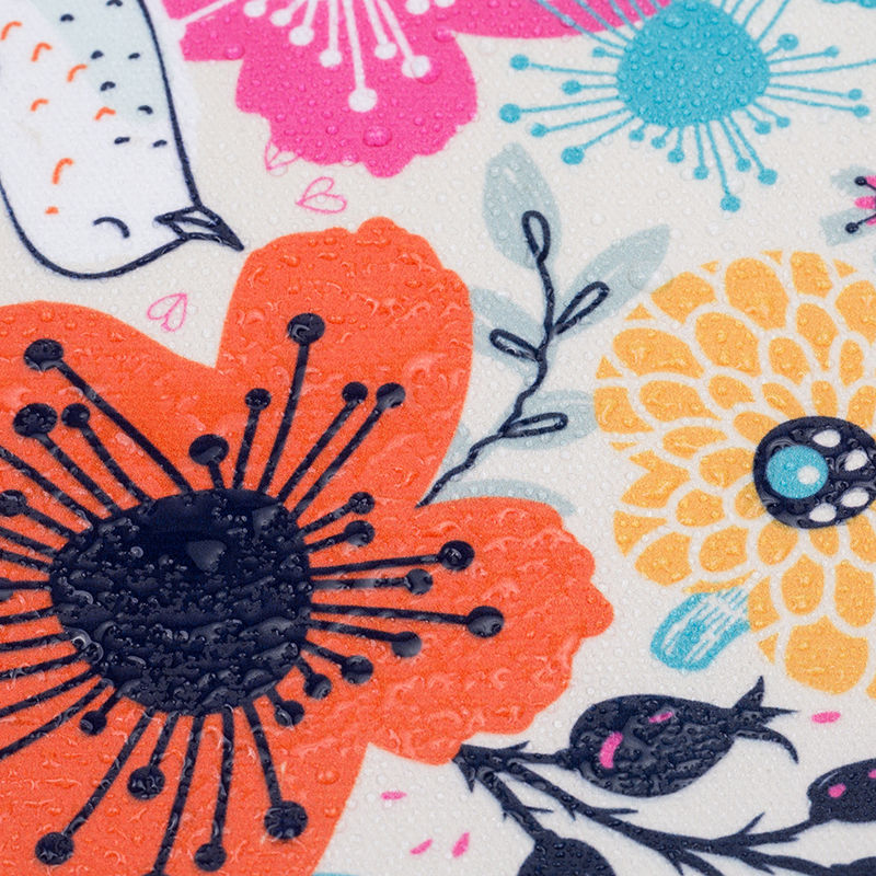 当社の最新インクジェット技術により、綿繊維の奥深くまでインクを浸透させ半永久的な発色を実現。大柄デザインはもちろん、オイル クロス パターン 印刷の細かなラインもくっきり再現します。環境に配慮した水性インクを使用。