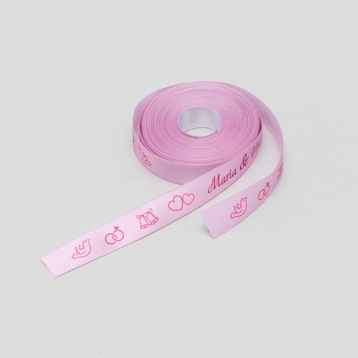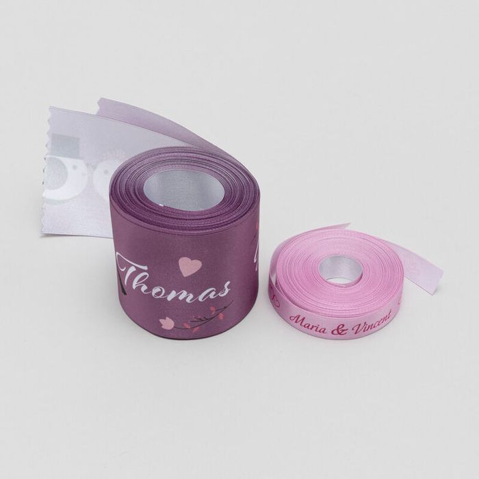 結婚式のケーキ、チェア、受付装飾やギフト包装に使えるリボン オリジナル。写真やメッセージを入れたリボン 文字 入れやロゴ入れもOK。印刷 リボンのご注文はオンラインで簡単、25cm/50cmのリピート幅を選び、15〜70mmの幅でオリジナル リボン オーダーができます。