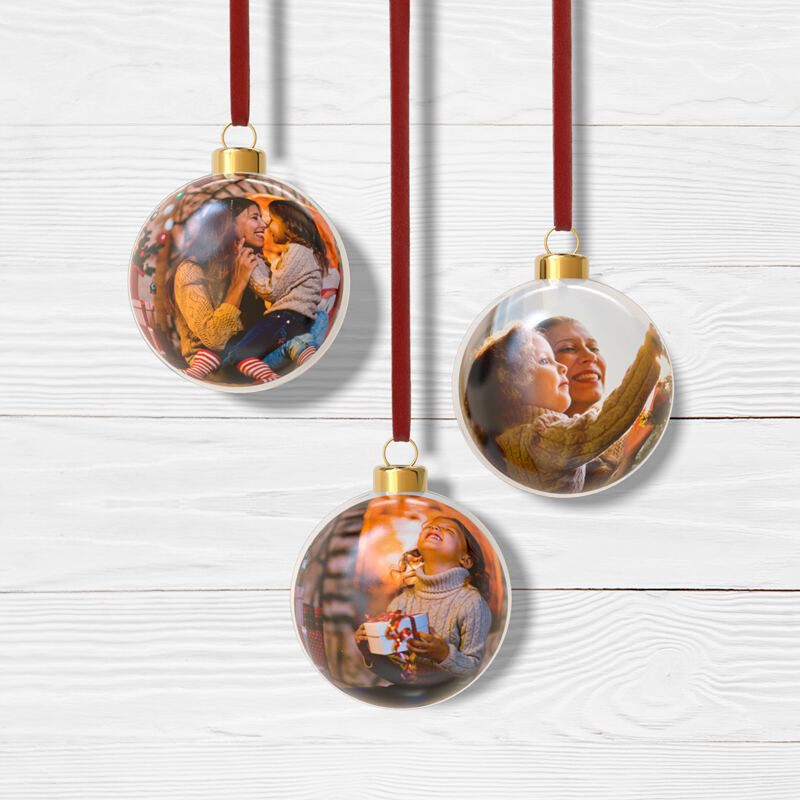早速デザインを始めて、写真プリントクリスマスボールでホリデー気分を高めましょう。