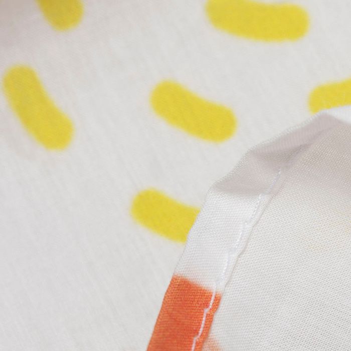 最新のデジタル技術により、天然ピマローンコットンへ端から端まで高精細プリントを行いスカーフ 印刷 小 ロットを可能にしました。色あせに強く、柔らかな風合いを保ちます。生地はご希望のサイズに裁断後、熟練の縫製チームがピンヘム仕上げを施しお届けします。