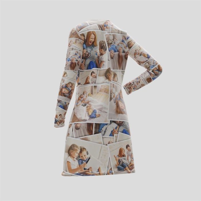オリジナル プリント ワンピースを作成する際、1枚の写真を大きく配置するのも素敵ですが、複数の写真を使用したコラージュやリピート柄もおすすめです。デザイン機能のリピートオプションを使えば、画像を異なるスタイルで簡単に繰り返し配置できます。顔写真やロゴも美しく仕上がります。