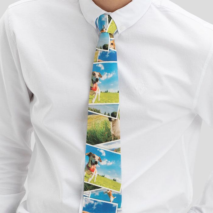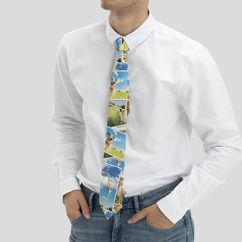 シルク100%の光沢が魅力の本製品は、写真やイラスト、メッセージを自由に配置できるネクタイ オリジナル プリント。