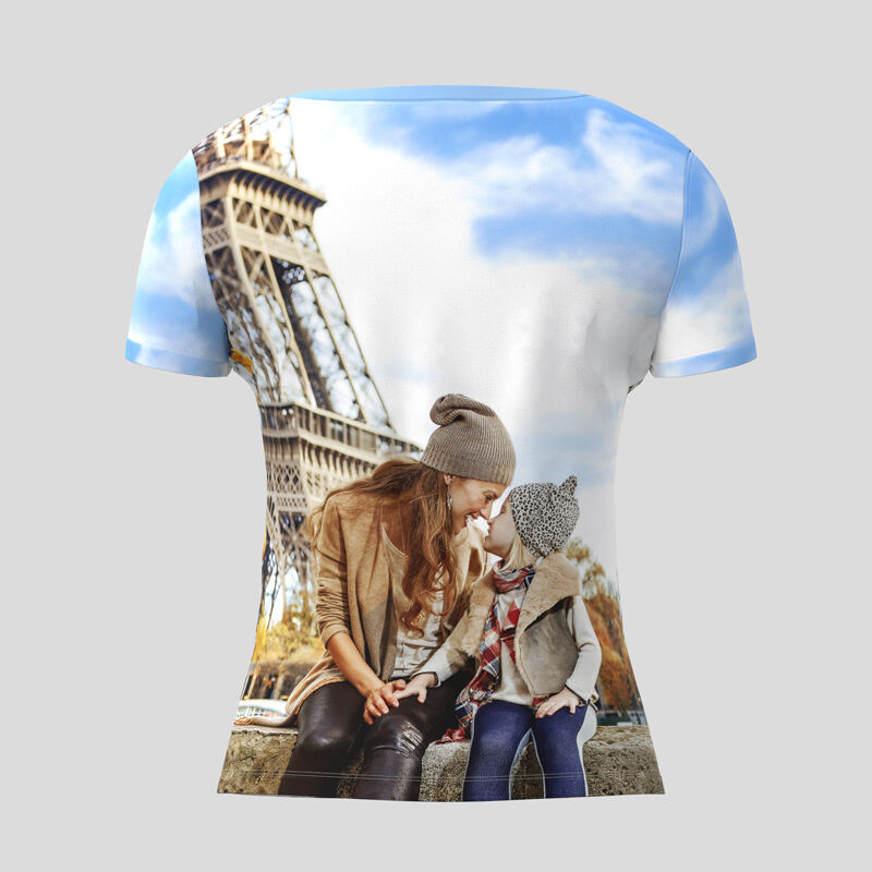 フロント・バック・襟リブ・左右袖にフルカラープリントが可能。写真 プリント スクープ ネック t シャツや名入れ スクープ ネック t シャツなど、スクープ ネック t シャツ カスタマイズの自由度は無限大です。糸色を変えればアクセントも追加でき、レディース カスタム スクープ ネック t シャツとしてギフトにも最適です。