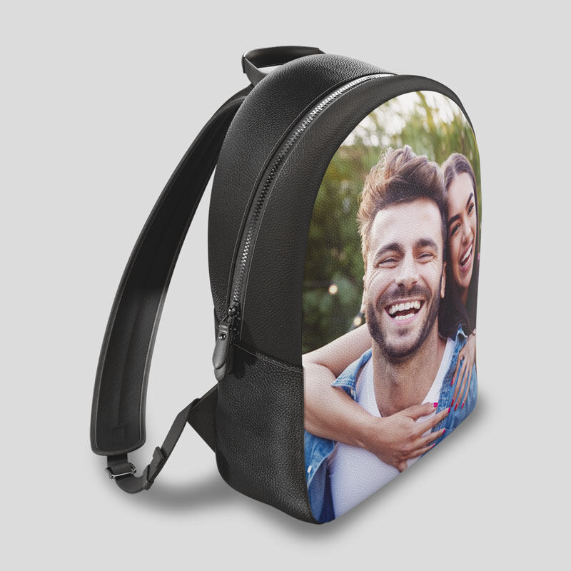 カスタム レザー バック パックのデザインはシンプル。縦長の写真1枚でインパクトを狙うも良し、複数写真のコラージュでポップに仕上げるも良し。レザー バック パック 名 入れを加えれば特別感が倍増します。続いて、金具の仕上げをゴールド、ガンメタル、ニッケルから、ステッチの色をグレー、クリーム、チャコールから選び、本 革 カスタム バック パックを完成させましょう。完成したら3Dプレビューで仕上がりを確認できます。