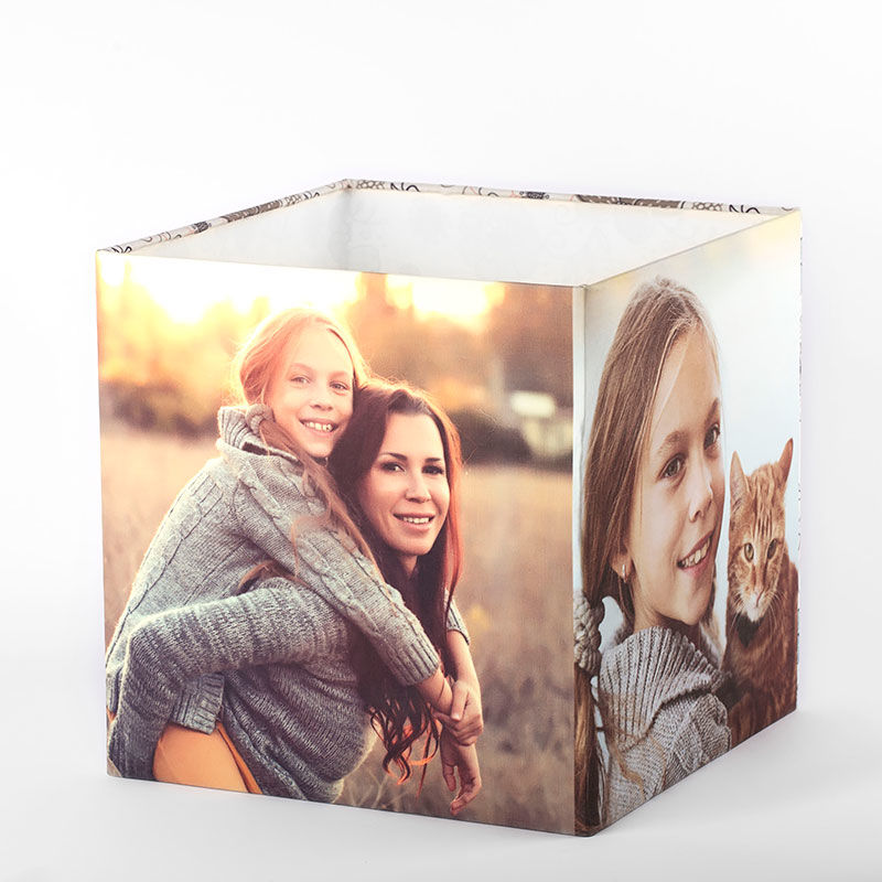 お部屋の雰囲気を一瞬で変えるキューブ型オーダーメイドペンダントライト。写真やロゴ、メッセージを4面にフルカラーでプリントし、世界にひとつのカスタム ペンダント ライトを作成できます。軽量シェードは一般的なリングに... 続きを読む