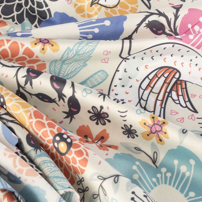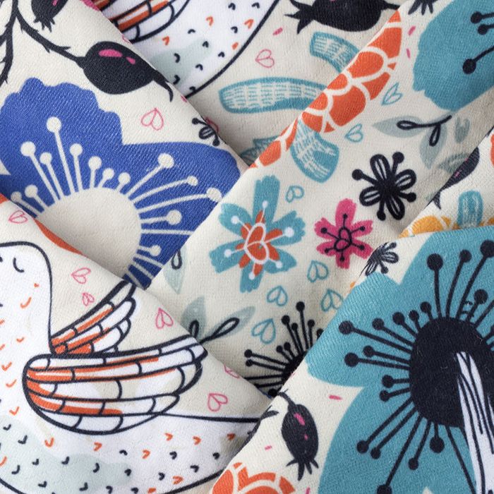 325スレッドカウントの高品質な寝具素材を使用。BCI(持続可能なコットンの生産)コットン100%。鮮やかな白を基調とした、滑らかで高級感のある繊細かつ耐久性のある素材。5つ星ホテルのベッドリネンに匹敵する品質です。プリント幅175cmまでの広幅素材。