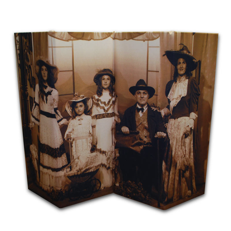 厚手キャンバスがハンドメイドの木製フレームを覆い、継ぎ目や金属ヒンジなしで『写真 プリント 間仕切り』を実現。布地が自然なヒンジとなり、アコーディオン状に折りたたんでフラットに収納できます。
