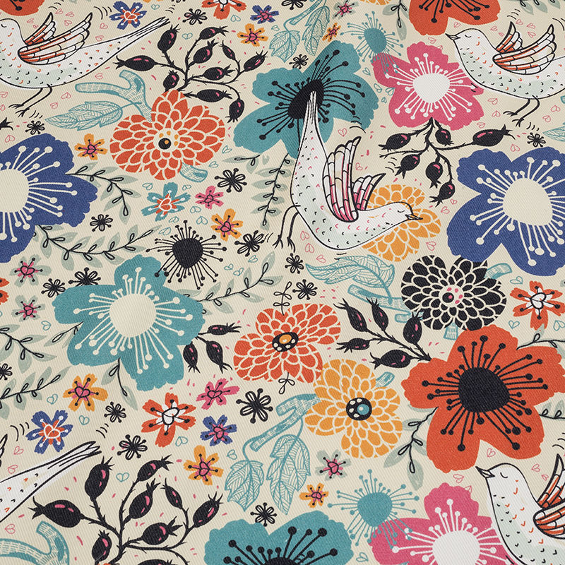 アップロードされたデザインは最新機器でフルカラー印刷。インクは繊維へ浸透し、洗っても色褪せにくい仕上がりです。縁処理はそのままお届け・カット・オーバーロックなどから選択でき、到着後すぐ張替え作業が可能です。天然繊維(コットンリネンなど)はプリント工程上、細かな白い点が現れることがありますが品質には問題ございません。