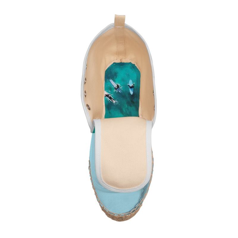 オリジナル ハイカット エスパドリーユは、当社の自社工房で注文ごとにハンドメイドされます。水性インクでキャンバス生地に高精細プリントを行い、鮮やかな発色を実現します。プリント後に職人がパーツを裁断し、余白が見えないよう丁寧に配置します。