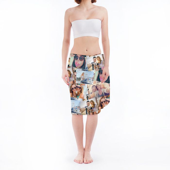 プリントサロンは長方形の大きな布にプリントされているので、様々な巻き方でお使いいただけます。当店の裁縫師がお客様の写真入りサロンをサイズに合わせて裁断し、完璧な仕上がりをお約束します。華やかなプリントデザインをお選びいただければ、どんな結び方でも美しい模様が映えます。ビーチラップには写真のコラージュをプリントすることもできます。お気に入りのスナップ写真を飾るのに最適です。