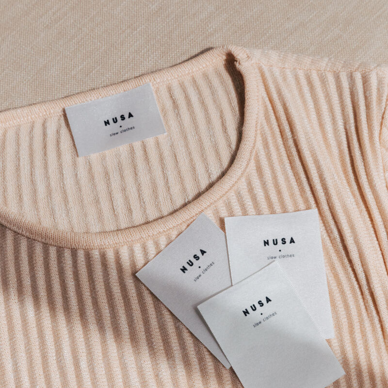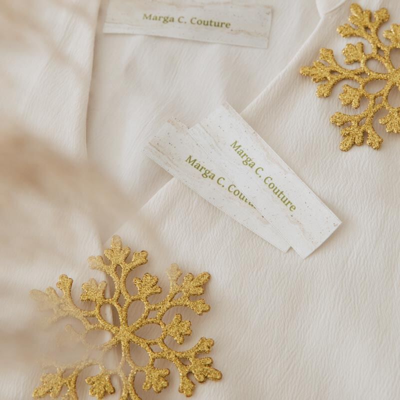 織り生地であるサテン布を使用しておりますが、ラベルは刺繍ではなくプリントとなります。フルカラーで鮮明に印刷されるので、ブランド名やロゴがより読みやすくなります。