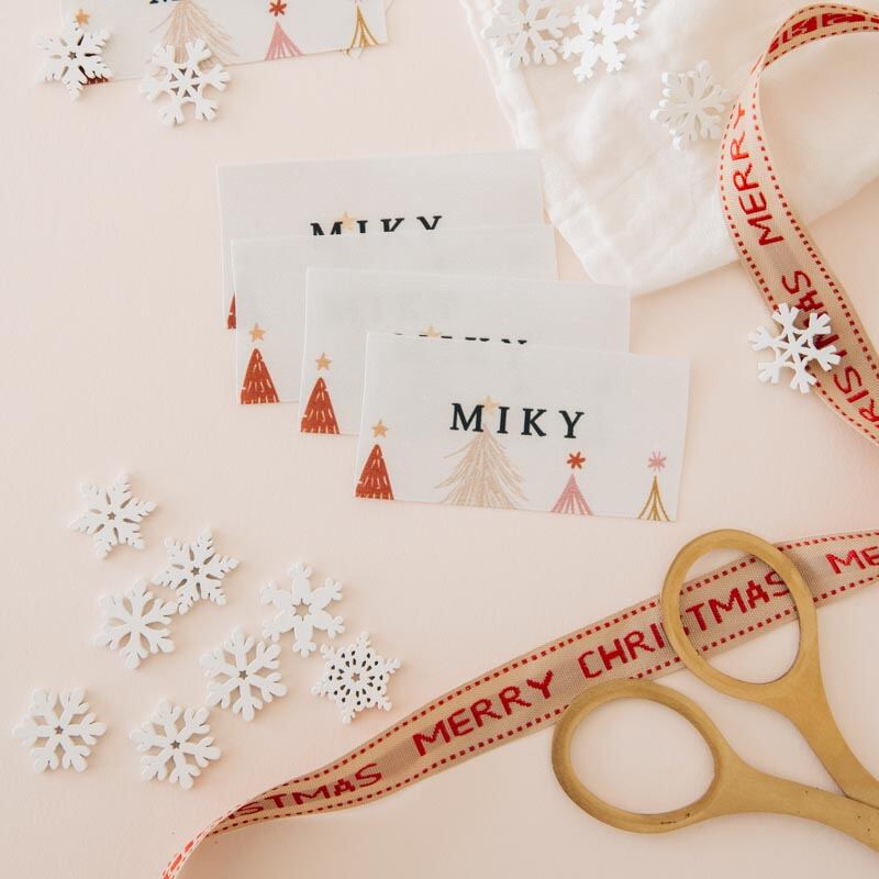 留意点:二つ折りタイプのラベルをご注文された場合、ラベルは平らな状態でお届けいたします。ご自身で折ってお使いください。