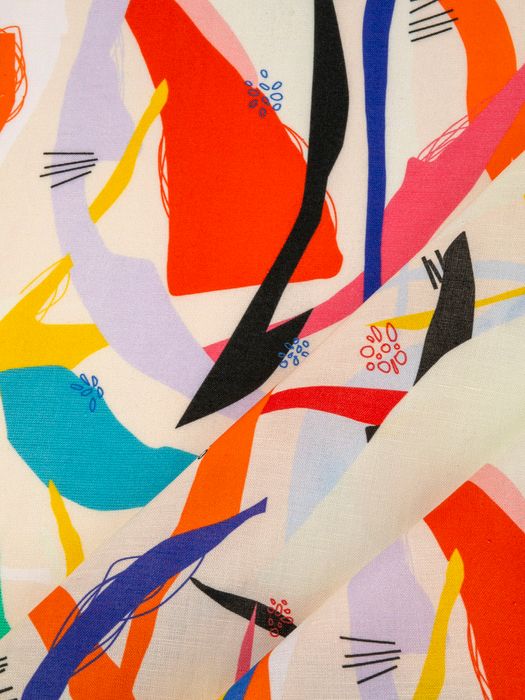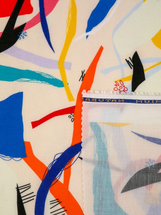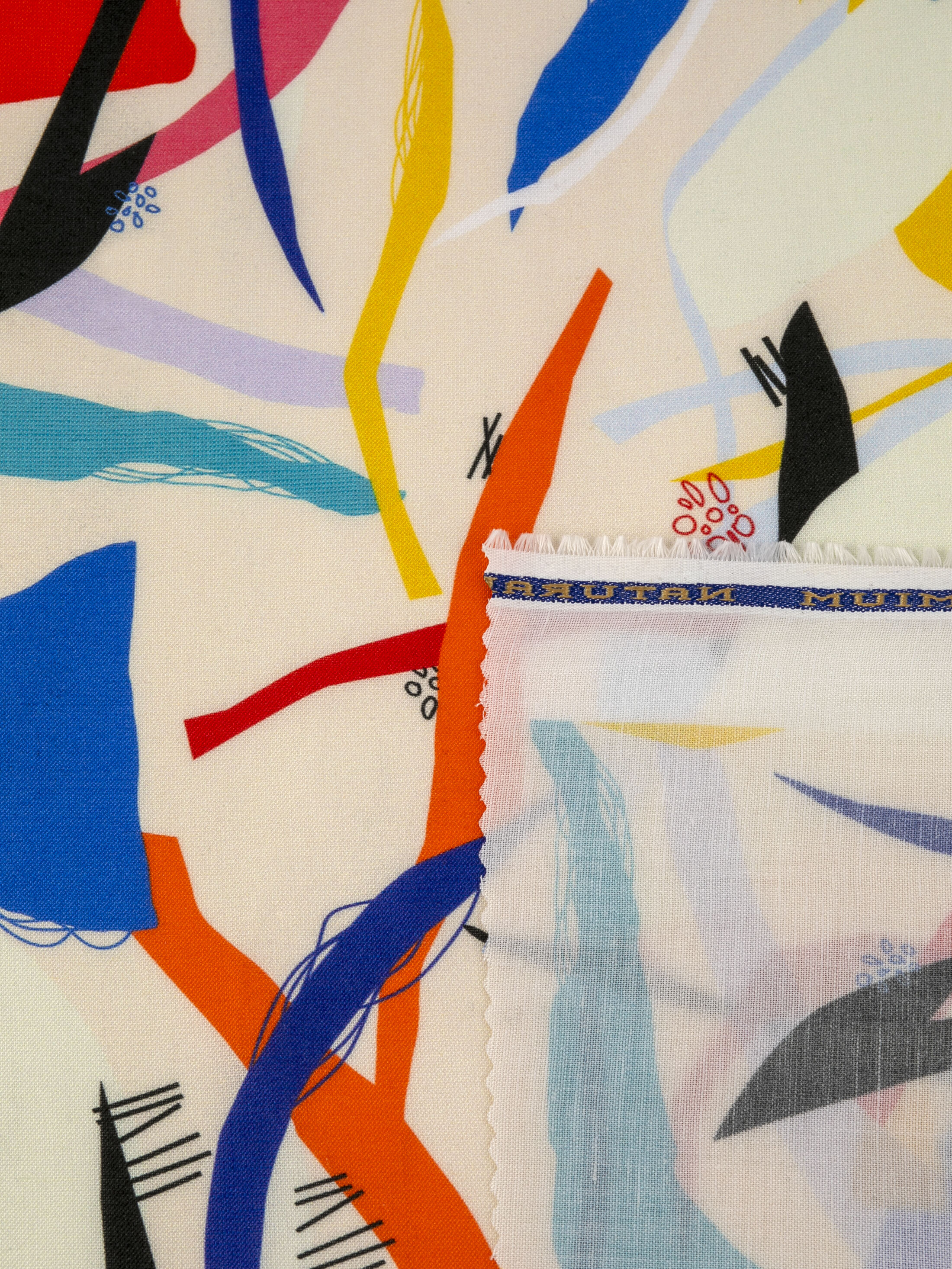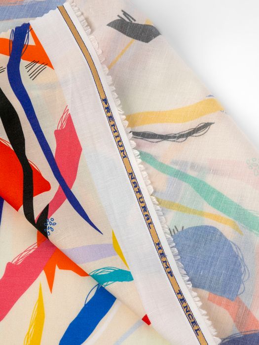 高発色な反応性インクを活かすため、コントラストの強い色や大柄のグラフィックが映えます。ヘンプ特有のスラブ感は、ヴィンテージ調・ボタニカル柄など自然を感じるモチーフと好相性。ドレスやシャツ用には流れるようなパターン、バッグやクッションには繰り返し柄でリズムをつけると◎。余白を活かし、素材感そのものをデザインに取り込むのもおすすめです。