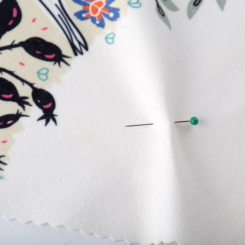 ポリ・スエードは、柔らかな起毛としなやかな裏面を併せ持つ扱いやすい素材です。最新の昇華技術でインクを繊維の奥まで染色するため、色褪せしにくく、プリントが剥がれる心配もありません。