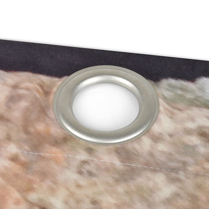 アイレットカーテンをご注文する際、デザインの上の部分にアイレットが取り付けらますのでご留意ください。アイレット取り付け部分は上からおよそ12cmとなります。パターン柄を印刷する場合、余白を設けず全面にデザインを広げたくなるかと思いますが、上の部分にはアイレットで隠れてしまっても支障のないデザインを持ってくることをおすすめします。