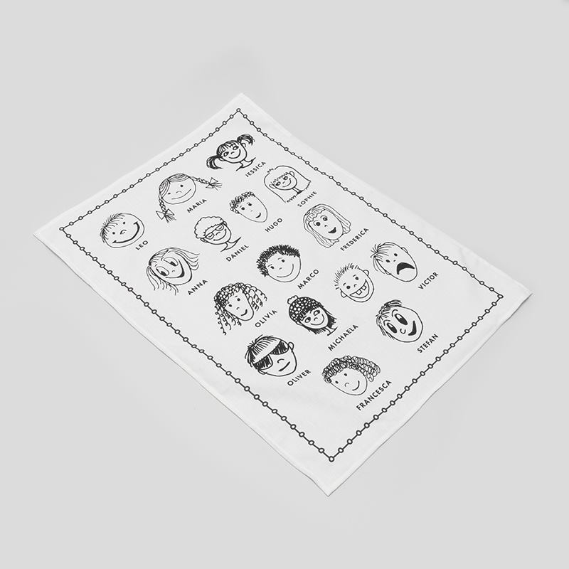 クラス全員のサインや絵をレイアウトし、卒業 記念 ティー タオル 名 入れとして贈呈。日常で使える記念品として長く愛用されます。