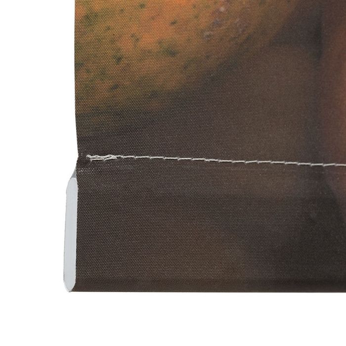 ロールスクリーンの上には追加で生地が巻かれていますが、この部分が真っ白な余白にならないよう、あなたのデザインをミラープリントいたします。これはロールスクリーンが下がっている状態で、ポールが見えてしまわないようにするためです。ロールスクリーン生地がポールから取れてしまわないよう、窓の大きさ以上にロールスクリーンを下げたり無理やり引っ張ったりしないようにご注意ください。