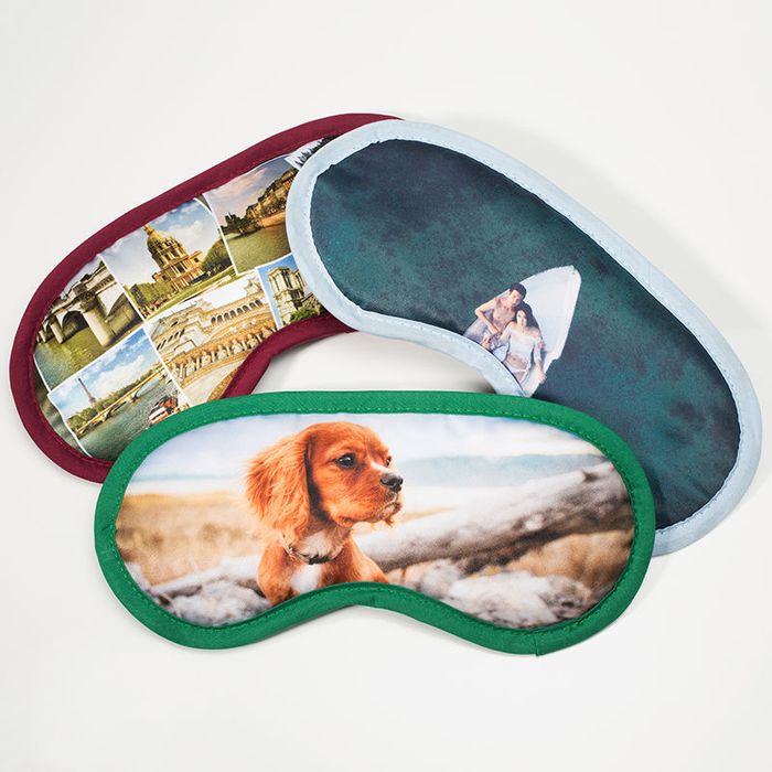 お気に入りの写真やアートワーク、ロゴ、メッセージを使い「アイ マスク オリジナル 制作」が可能です。2種類のスリープマスクからお選びいただけます。どちらもサテンの間にソフトクッションを挟んでおり、目元に優しくフィットします。