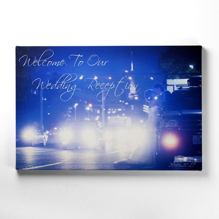 最高級キャンバスに『ウェルカム ボード キャンバス 印刷』を施し、結婚式・披露宴・ウェルカムスペースをワンランクアップ。写真とテキストをアップロードするだけでオンライン完結、最短で製造・発送いたします。