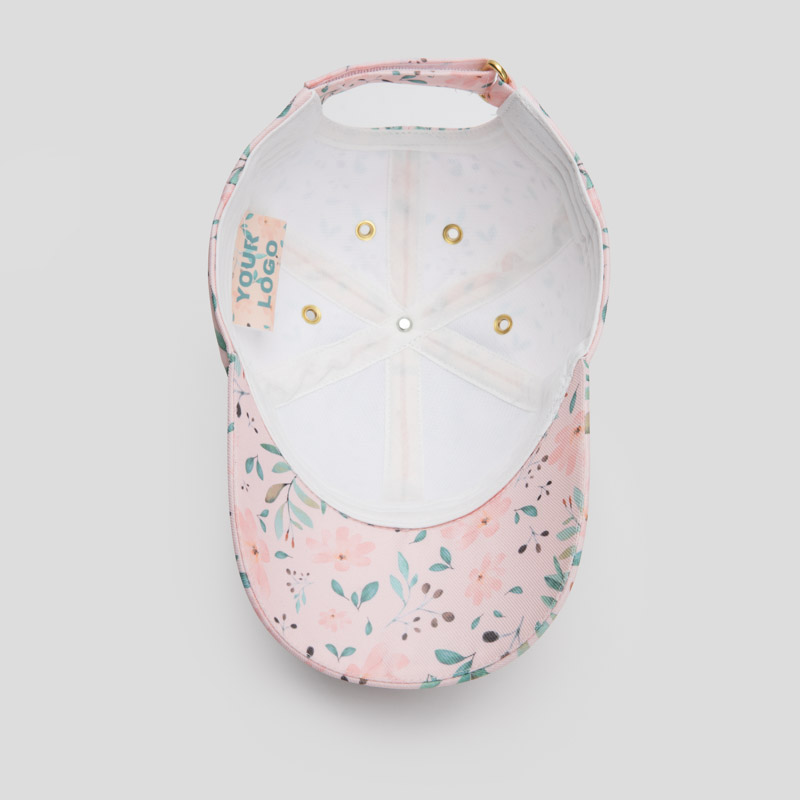 つばとストラップの内側にもデザインを入れられるので、メッセージや座右の銘、名前をプリントして“名入れキャップ”として仕上げるのもおすすめです。オリジナル キャップ 刺繍では味わえないフルカラー表現で、キャップ 名 入れにもおすすめです。