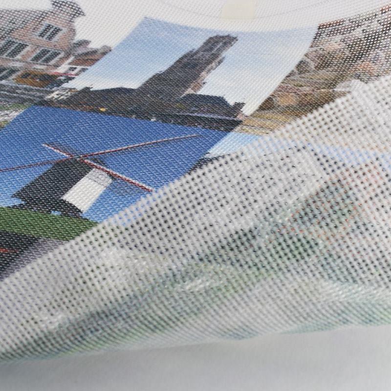 タペストリー素材の奥深くまでインクが浸透させられる印刷技術であなたのデザインはプリントされます。このことでとても鮮やかな発色が可能となり、剥がれたり色あせたりしないプリントに仕上がります。カウント数が大きくなると編み目の大きさも小さくなり、編み目の穴の数も多くなります。例えば、10カウントのニードルポイントは3種類の中でも大きめの編み目を持ち、14カウントになると編み目は小さくなりますが、同じ面積内での穴の数は多くなります。細かい線のあるデザインをプリントしたい場合、ご注文の際この点をご留意ください。