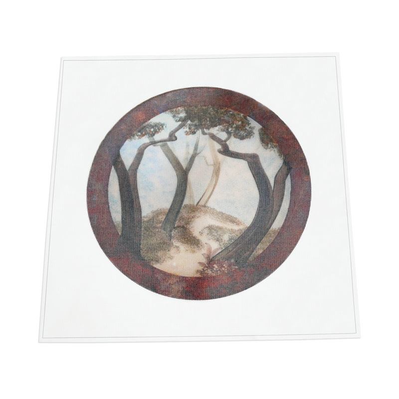 このタペストリーは、プリント後に刺繍を重ねるカウントステッチや自由刺繍に最適です。推奨糸はクルーエル糸とペルシャ糸で、細かい表現が可能です。糸やカウント数はお好みに合わせてお選びください。