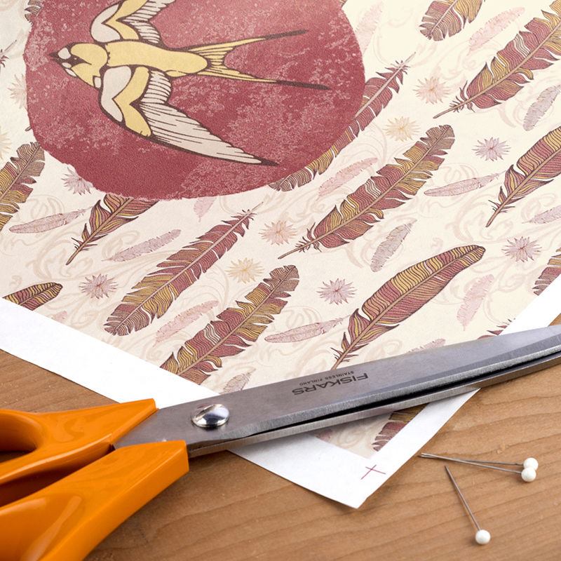 印刷プロセスの最初のステップでは、転写紙に画像を印刷します。写真ギフトでは、この転写紙を使用してほとんどの商品を製作しています。お客様が注文された転写紙は、弊社の熟練職人が通常行う過程を、お客様自身が選択された生地にアイロンなどで転写作業することになります。