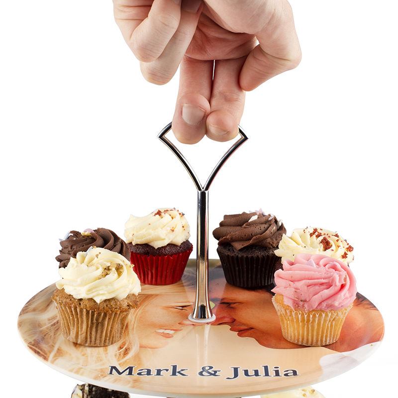 カップケーキを置く位置に文字やパターンを配置すれば、食べ進めるたびにサプライズが現れます。オーダー メイド ケーキ スタンド ギフトとして贈る場合は、受取人の名前や記念日を入れるのもおすすめです。ビンテージの花柄、ポップな写真コラージュなど、自由な発想でパーソナライズ ケーキ スタンド 通販をお楽しみください。