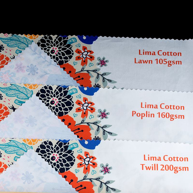 リマコットンは、写真 入り コットン プリント 生地やイラスト プリント コットン ファブリック、名 入れ コットン 生地 プリント、パーソナライズ コットン ファブリックを作りたいクリエイターに最適です。昇華転写でプリントするため、インクが繊維に浸透し、ひび割れや色落ちが起こりにくく、洗濯にも強い仕上がりが特徴。ポプリン・ローン・ツイルの3種類(105〜200gsm)の中から質感や用途に合わせてお選びください。