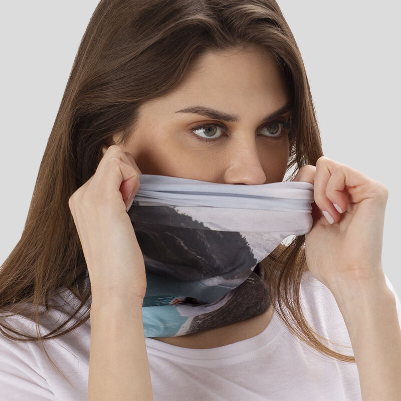 ハイテクノロジーのデジタルプリント技術であなたのネックチューブを印刷します。環境に優しいインクをスカーフの繊維奥深くに結合させるので、布表面にインクを残すことなくプリントすることができます。アウトドアでの使用に耐えうるように設計されていますので、万が一雨風雪嵐に遭遇してもプリント品質が落ちることはありません。速乾性と耐風構造を持つ布地ですが、さらにストレッチ性も持つチューブスカーフとなります。