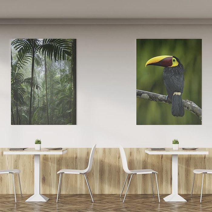1枚の画像を2つに分けることでパノラマ効果が生まれ、空間が広く感じられます。キャンバス アート 印刷した風景やモノクロ写真を少し離して飾れば、ギャラリーのような仕上がりに。側面はミラーエフェクト印刷なので、余白を作らずデザインしてください。
