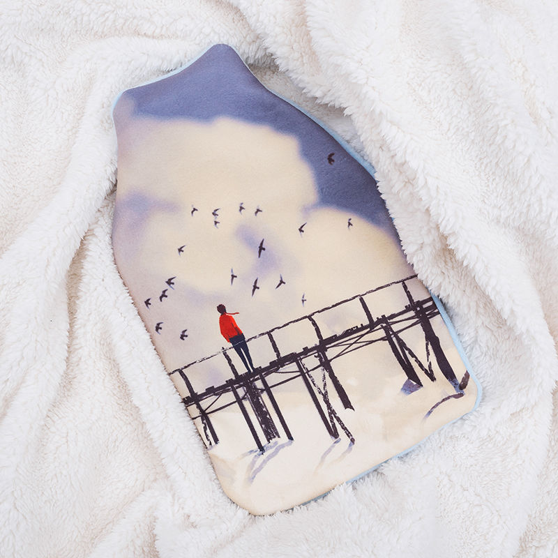 フリース、フェイクスエード、ベルベットを使って、あなたのオリジナル湯たんぽカバーを製作いたします。あなたのデザインは、インクを繊維の奥深くまで浸透させる特殊な印刷工程により、長持ちプリントが実現します。熟練した技術者と裁縫チームが、注文を受けてからすべてハンドメイドで仕上げるので、美しい仕上がりになり、他では手に入らないオーダーメイドのギフトになります。ゴム製の湯たんぽとカバーがセットになったパッケージをご注文いただくか、既存のカバーと交換してお使いいただくこともできます。
