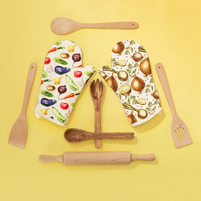 ホームパーティーやクリスマスのキッチンギフトとして贈れば、受け取った方も料理が楽しくなるはず。カスタム オーブン ミトン で毎日の調理をもっとスタイリッシュに。