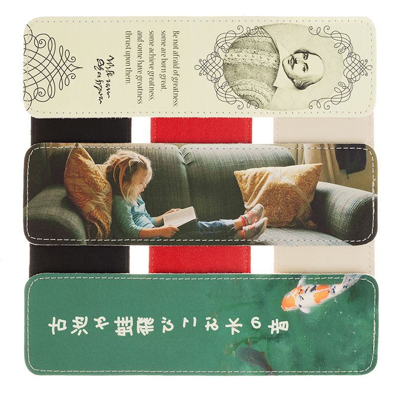 写真や名前をプリントして作るレザーブックマークは、毎日の読書時間を特別に彩ります。