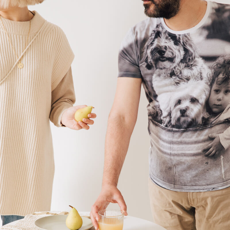一番盛り上がった部分を測ってください。ご注文確定後、熟練スタッフが柄合わせを確認しながらプリント・裁断・縫製を行います。インクを繊維奥まで浸透させる最新技術で、摩擦や洗濯でも剥がれにくい仕上がり。オンデマンド生産だから在庫ロスがなく環境にも配慮しています。ネックリブは5色、ラベルは2種類から選択でき、細部まで“あなたらしさ”を表現できます。※ハンドメイド製品のため肩などの縫い目で柄がわずかにずれる場合があります。